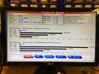 Jetzt kann ich folgenden Trick machen: Turbo-Jumper auf 10MHz. Speicher wird korrekt auf 4MB gezählt (3,6xx). Dann Jumper auf 20MHz und jetzt kann ich beliebig Soft-Resets machen. Es wird immer 4MB angezeigt und alles bleibt soweit friedlich.