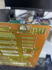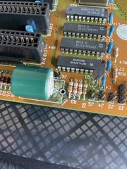Inzwischen habe ich auch das überhaupt nicht funktionierende Board von Nelson bekommen. Es ist identisch, hat aber den 32MHz Quarz. Ich konnte es auch durch tauschen der gesockelten ROMs nicht zum Starten überreden. Die ROMs sind in Ordnung. Eine POST-Test-Karte zeigt zwar anliegende Spannungen und einen anliegenden Takt an, leider aber keinerlei Fehlertöne oder Fehlercodes (---- im Display). Scheint mir als kommt Nelsons Board garnicht erst bis zum Laden des BIOS.