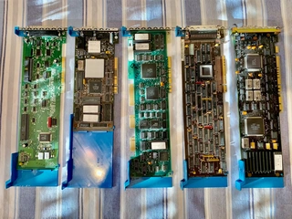 Mitte links ist Tokenring, mitte rechts vermutlich irgendein Kommunikationsadapter zum Anschluss an eine Großrechneranlage?