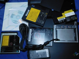 Auch das passende Zubehör ist enorm, wie dieser T20 mit großer Dockingstation (mit PCMCIA, PCI und Laufwerksslot), Anleitungen, Software, 2 Akkus, HDD-Bay, int/ext. Floppy usw.