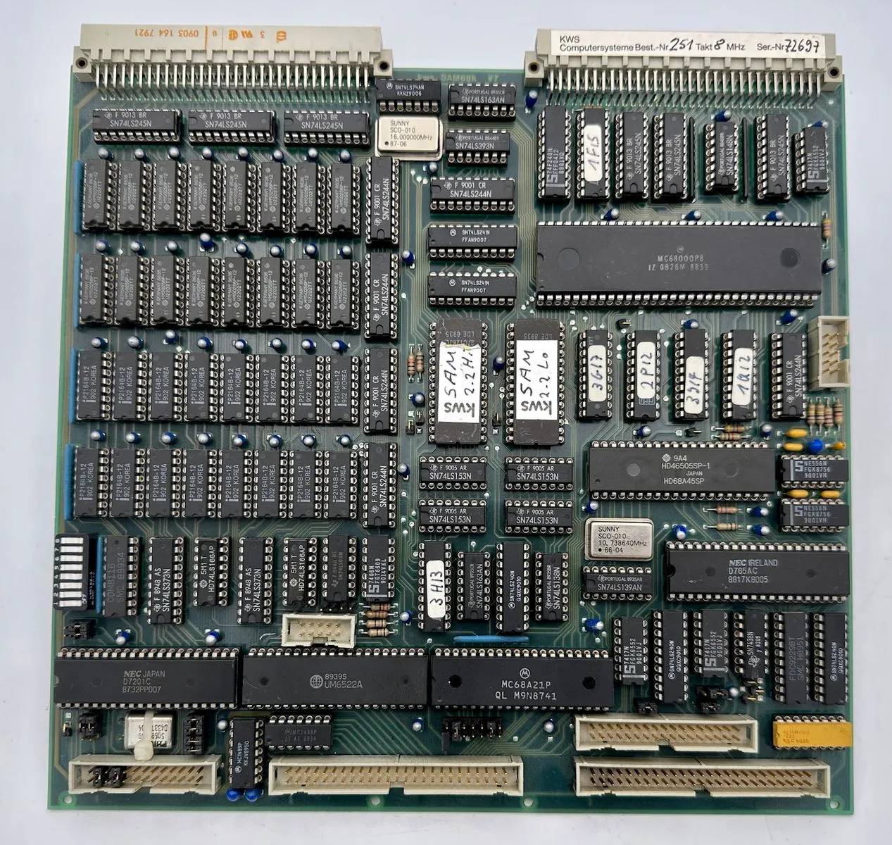 Viel zu teuer in der Bucht gekauft, fand ich aber Interessant. Ein SAM68k. Scheinbar ein sehr potenter 68000 SBC, welchen es auch im Gehäuse gab.