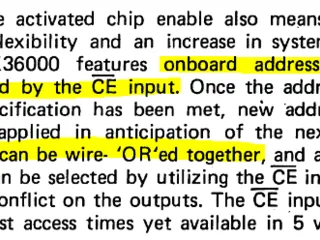 Ja, das steht tatsächlich im Datenblatt. Ich finde die Zeile des "Wired-Or" auf den ersten Blick verwirrend, aber wenn das auslesen der Daten mit CE\=L nur stattfinden kann und bei CE\=H die ausgänge alle Hochohmig sind, macht die "Wired-Or"-Aussage dennoch sinn...