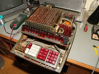 Braucht der auch so lange, um eine Wurzel zu berechnen? Mein Remington braucht für Wurzel, Log, Sin, Cos, Tan und solche Sache immer ein Augenblick, um es auszurechnen. Kurioserweise zeigt er dabei in der ganz rechten Stelle im Display ein kleines flackerndes "o".