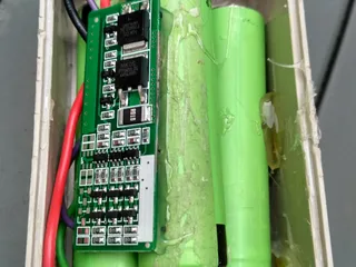 Also hab ich 3x 18650 LiIon-Zellen in Reihe eingebaut und eine Akkuschutz- und Balancer-Elektronik dazu eingebaut.
